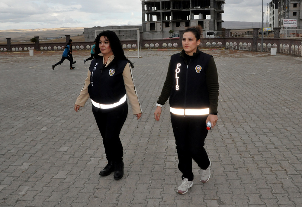 Okul çıkışı çocukların güvenliğini takip eden kadın polisler, "Biz her zaman sizin yanınızdayız. Karşılaştığınız bir durumda 112'yi aramaktan çekinmeyin" mesajını veriyor.