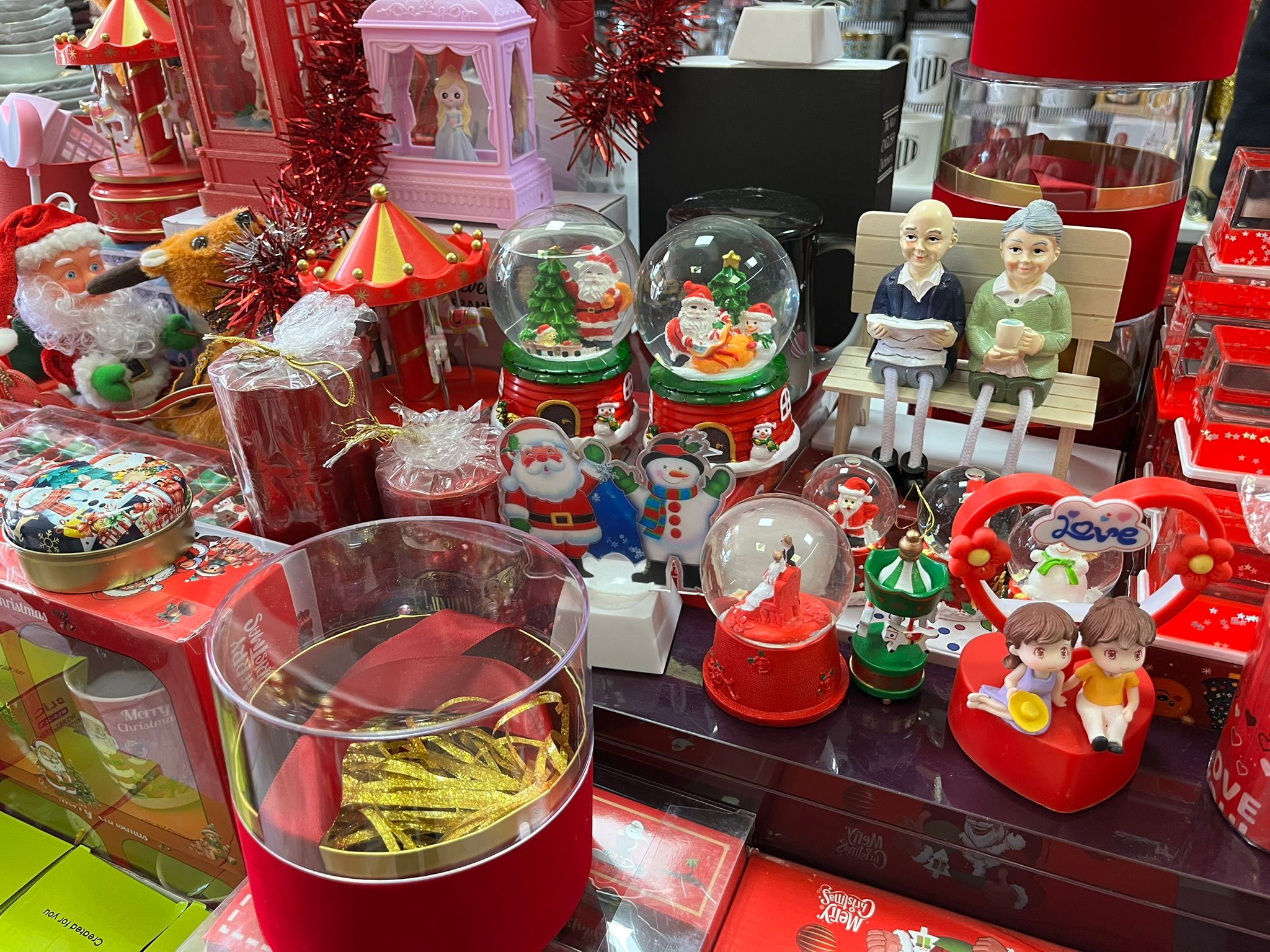 Kent merkezindeki mağazalarda yılbaşı süslemeleri raflarda yerini alırken, yapay çam ağaçlarının boyutuna göre fiyatlarının değiştiği görüldü.