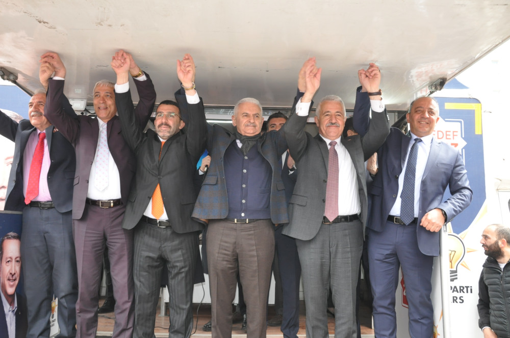 Muhalefetin vaatlerine karşı Kars’a yapılanları da kaydeden Yıldırım, “Şimdi bayrağı Adem Çalkın’a devrediyor, Adem Çalkın da sizin evladınız ve gerek bizim zamanımızda gerekse Ahmet beyin zamanında, Yunus hocanın da katkılarıyla Kars'a büyük hizmetler yaptık. Kars'ta bir metre bile asfalt yol yoktu bugün 350 kilometreden fazla asfalt yolunuz var, hayırlı uğurlu olsun. Kars’ta sadece 22 kilometre bölünmüş yol vardı şimdi 290 kilometre bölünmüş yol var, Erzurum tarafına, Karakurt tarafına, Kağızman tarafına bölünmüş yollar yaptık, Kars’tan Bitlis’e, Bakü’ye demiryolunu yolunu yaptık mı? Helal olsun. Kars’ta ulaştırma bölge müdürlüğünü getirdik mi? Hayırlı olsun. Kars'ın havaalanı vardı ama yolcusu yoktu, terminali yoktu. Bugün artık yılda 500 bin hava yoluyla Kars’a misafirlerimiz geliyor, daha çok gelecek. Kars Ekspresi, treni ne güzel de tuttu. Sivas’a, Erzincan'a uğruyor Doğa Ekspresi buralara turist getiriyor, alışveriş yapıyorlar, Kars'ın ekonomisine katkı sağlıyorlar. Kars'a lojistik merkez yaptık mı? Hayırlı uğurlu olsun. Kars’a barajlar yaptık mı? Köprüler, viyadükler yaptık mı? Onlar ne diyor? ‘Sana söz’ söz uçar eser kalır değerli hemşehrilerim. Biz sadece söz vermedik, verdiğimiz her sözünde de gereğini yaptık, dağ gibi hizmetleri ülkemizle buluşturduk, Karsımızla buluşturduk.” diye konuştu.