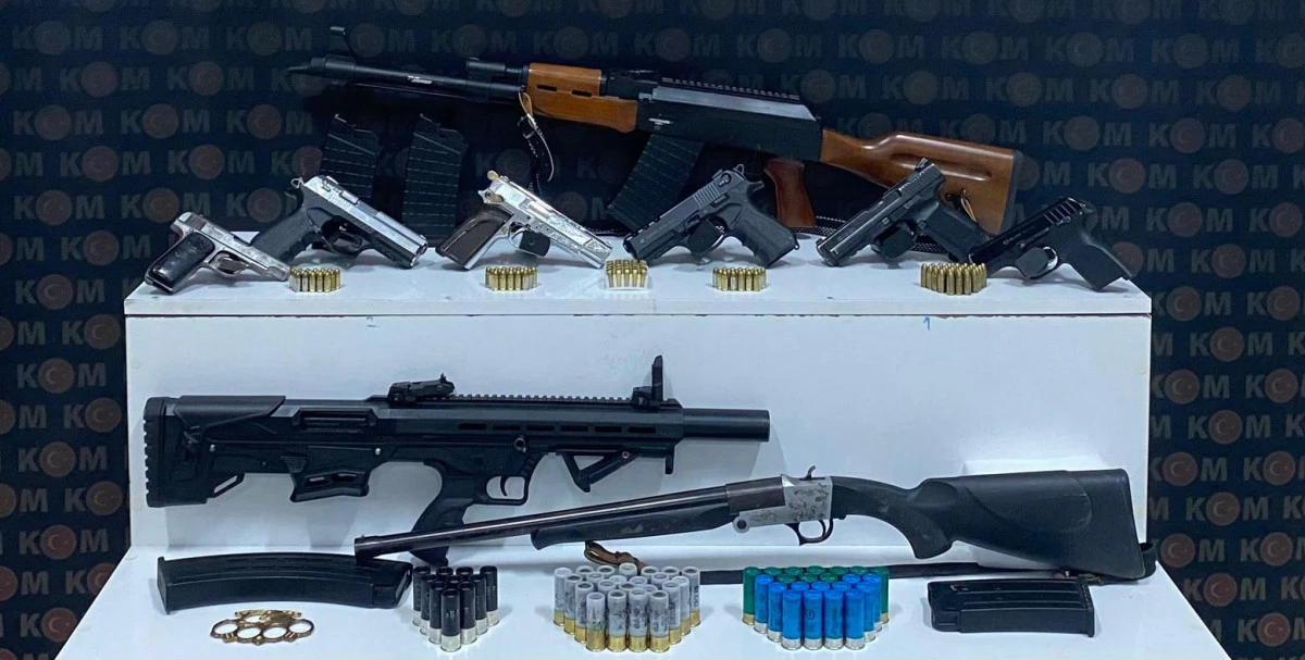 Toplam 33 ekip ve 90 personelin katılımıyla gerçekleştirilen operasyonda, 5 ikamet ve 1 iş yerinde detaylı arama yapıldı. Yapılan aramalarda; 4 ruhsatsız tabanca, 3 ruhsatsız pompalı/av tüfeği, 2 ruhsatsız havalı/kurusıkı tabanca, 1 muşta, 12 şarjör, 128 fişek ve 69 kartuş ele geçirildi.